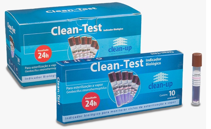 Indicador Biológico do tipo autocontido para monitorar ciclos de esterilização a vapor, com tempo de leitura final de 24 horas incubados em incubadora apropriada com temperatura de 58°C +/- 2°C. Composto por uma tira/disco de papel, impregnado com esporos de Geobacillus Stearothermophillus ATCC 7953 (não patógeno) contendo população mínima de 1 x 105, ampola de vidro lacrada e quebrável, contendo meio de cultura específico, combinado com indicador de pH, que muda de cor após incubação, para amarelo quando existirem esporos viáveis.